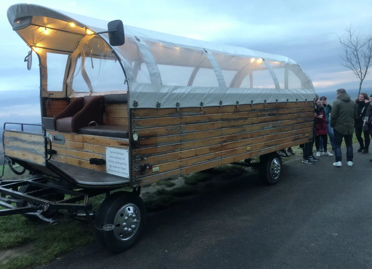 Wir fahren Sie in gemütlicher Runde durch unsere Weinberge, in Gruppen von 8 - 22 Personen , mit Blick in den Schwarzwald, die Vogesen und den Kaiserstuhl. Selbst ein Blick auf das Freiburger Münster ist mit dabei. Zeit: 1,5 bis 2 Stunde